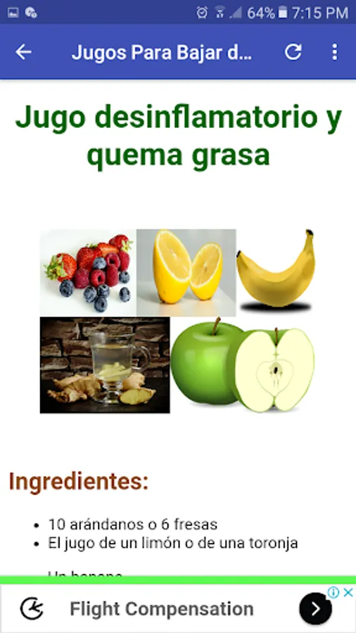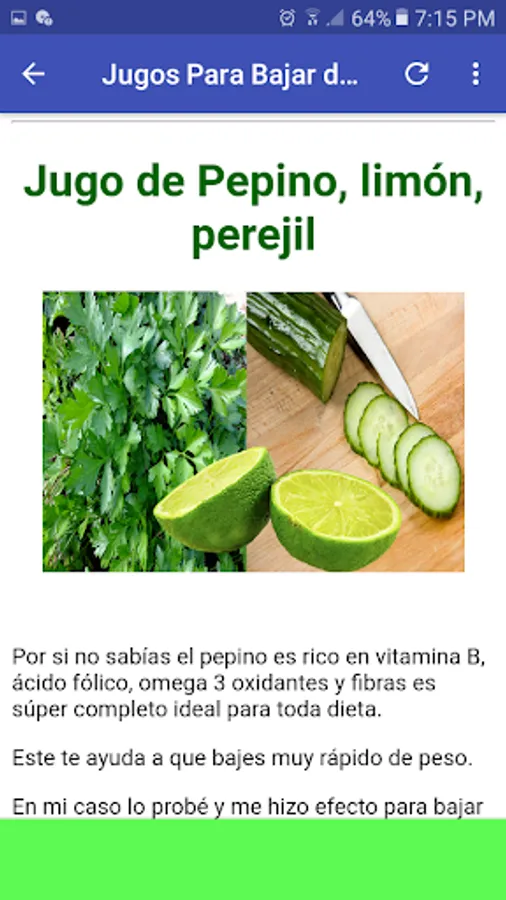 This app, in addition to juice recipes to burn abdominal fat and lose weight, includes the benefits of drinking natural juices and smoothies, tips to lose weight or lose weight.