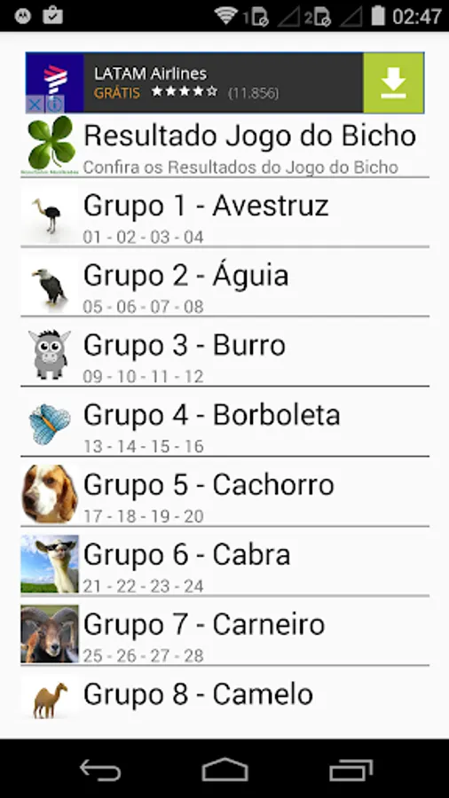 Check the groups and their scores of the numbers game. Each group consists of 4 dozen. So we have 25 groups or animals covering 100 dozen. To know what the animal or group of a thousand or hundred just to see which group your ten belongs. Example: The dozens of group 1 (ostrich) are 01, 02, 3:04, so any ten, hundred or thousand finished with these scores will be the ostrich group.