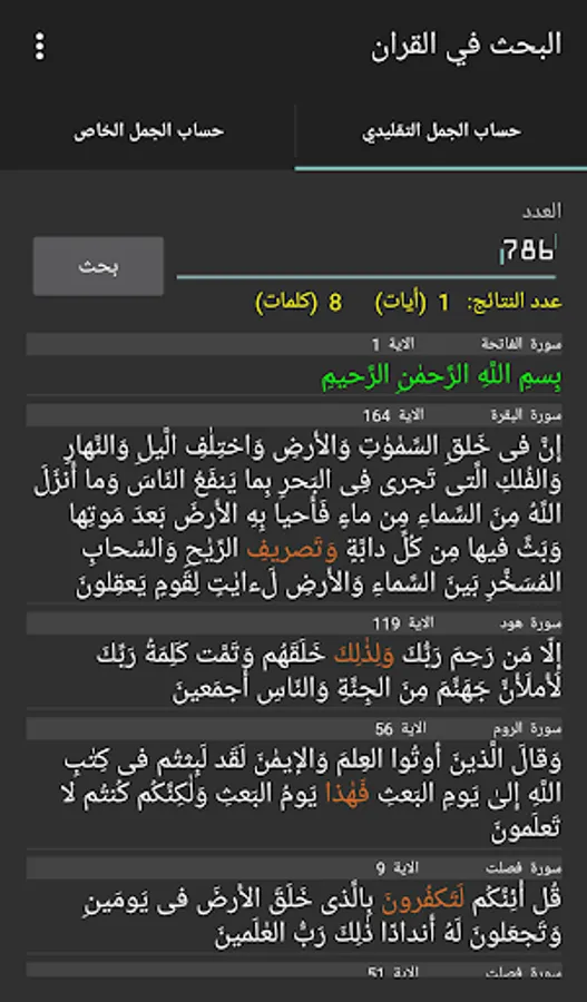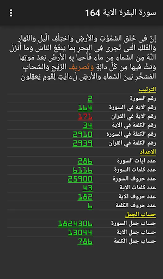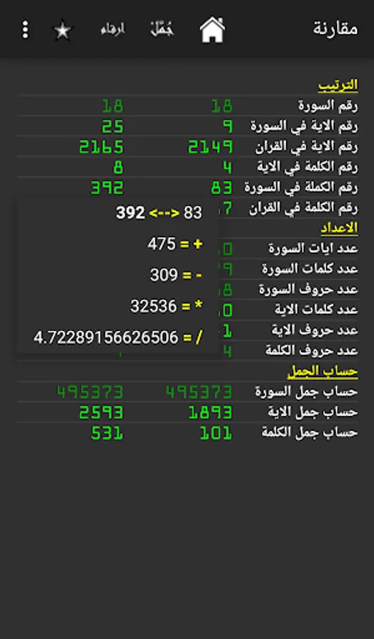 Statistics Koranic verses and words (respectively, numbers and phrases account)