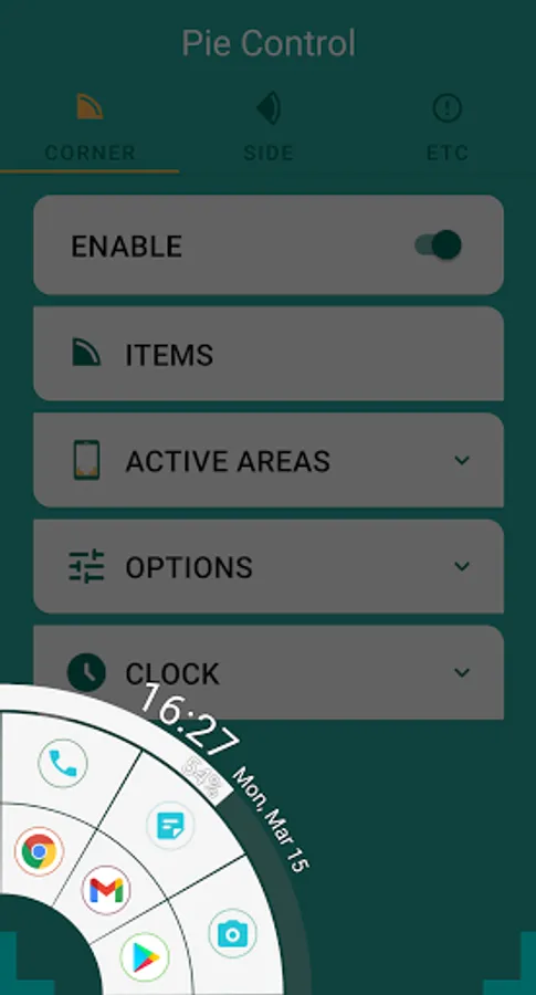 - Pie style launcher.