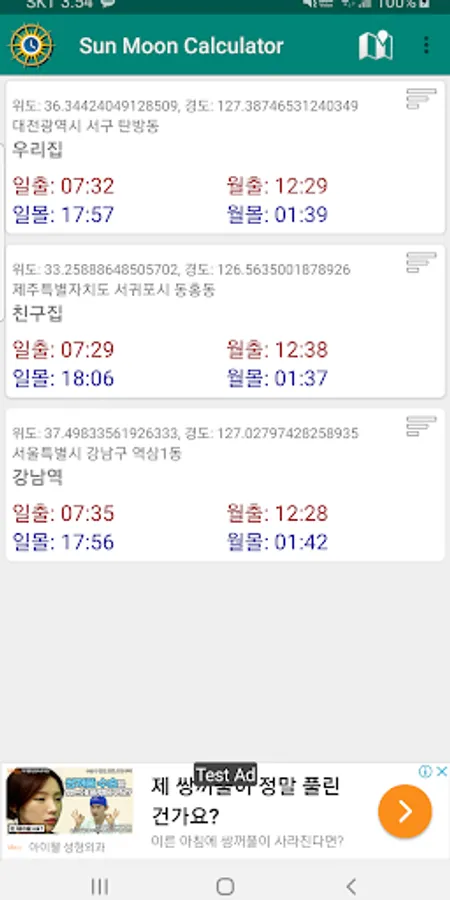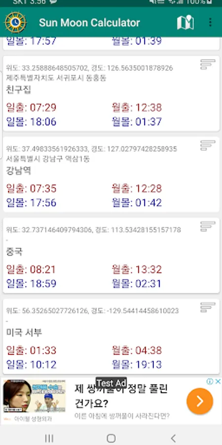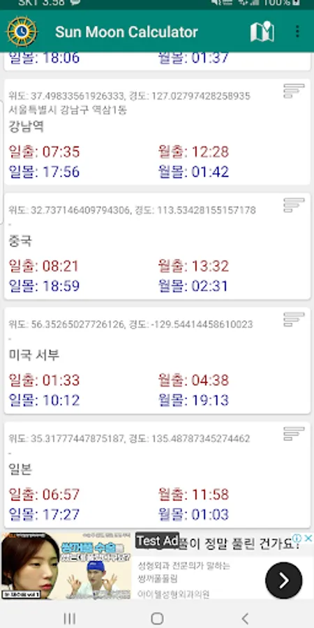 It provides sunrise time, sunset time, moonrise time, and moonlight time in all regions of Korea. Sunrise, sunset, moonrise and moonrise times are also available for foreign regions that do not appear on the Naver map.