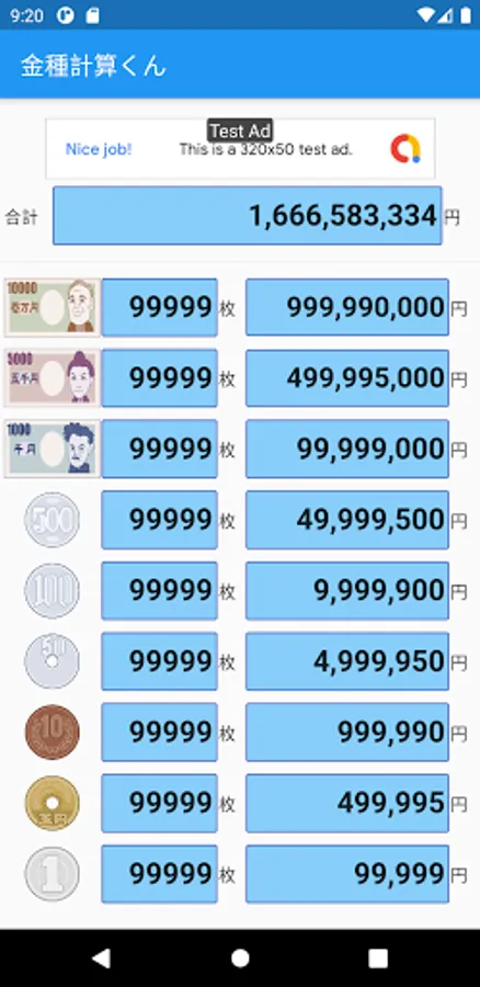 It is a simple calculator specializing in denomination calculation of Japanese yen.