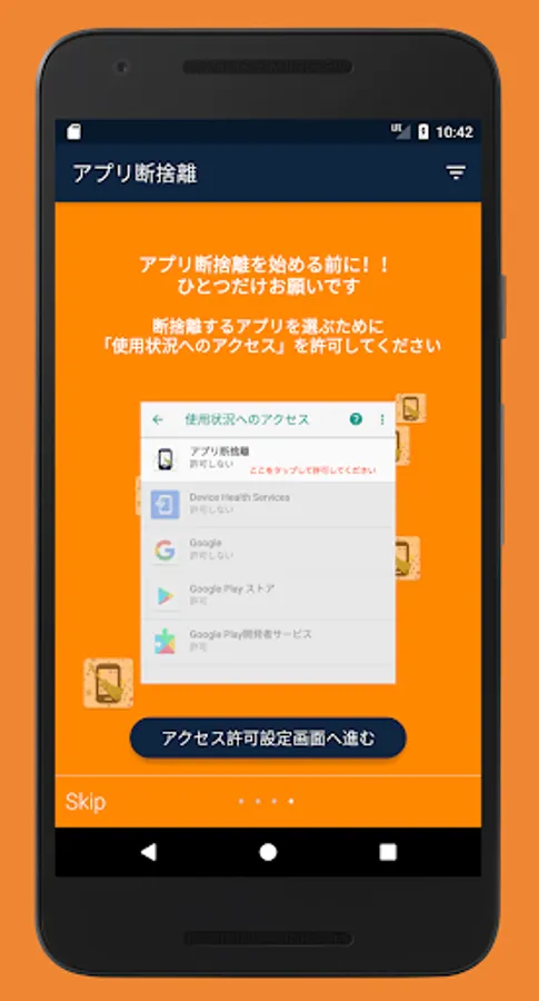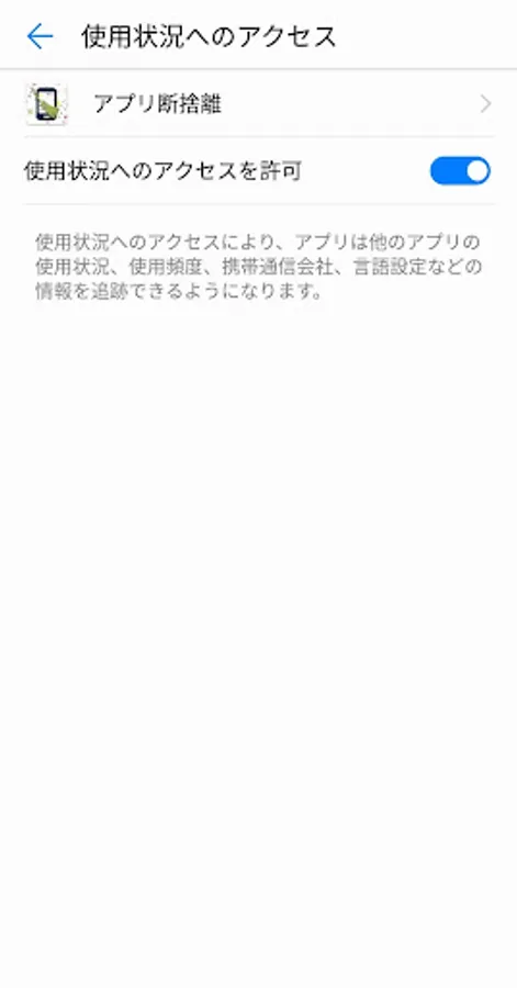 ・まずは「使用状況へのアクセス」を許可してください(アプリを起動すれば許可画面へ移動できます)