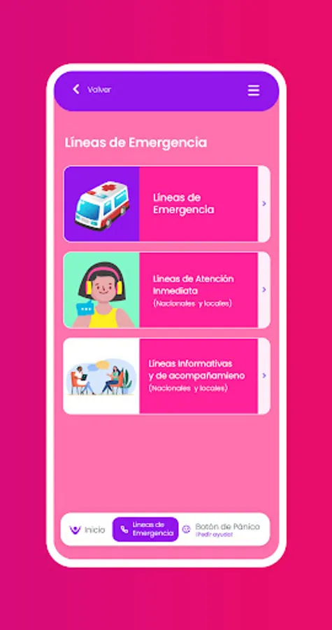 In addition to finding information of great interest to you, you will have at your disposal the guidance and emergency lines as well as a panic button that will send an alert and the location to your contacts in case you need help.