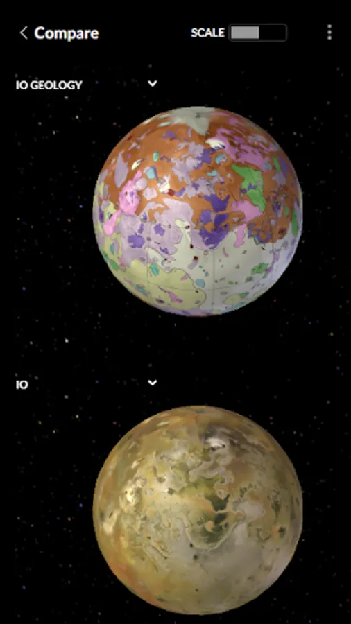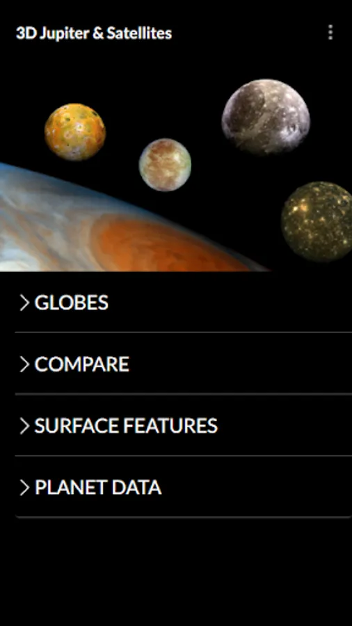 Prepare to be enthralled by the immense grandeur of Jupiter and its captivating moons with Jupiter & Moons 3D Globe. This remarkable application offers an unprecedented opportunity to delve into the mysteries of the largest planet in our solar system and its four most prominent satellites: Io, Europa, Ganymede, and Callisto. Immerse yourself in a mesmerizing interactive journey as you freely compare, rotate, and zoom through stunning 3D globes. From exploring the surfaces of Jupiter and its moons to analyzing their relative sizes and geological features, this application will transport you to the heart of our celestial neighborhood. Prepare to embark on an epic cosmic voyage that will leave you in awe of the wonders of the universe.