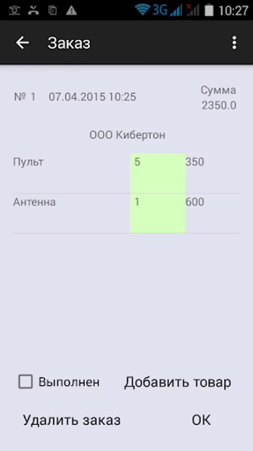 After editing, the order appears in the list of current orders.