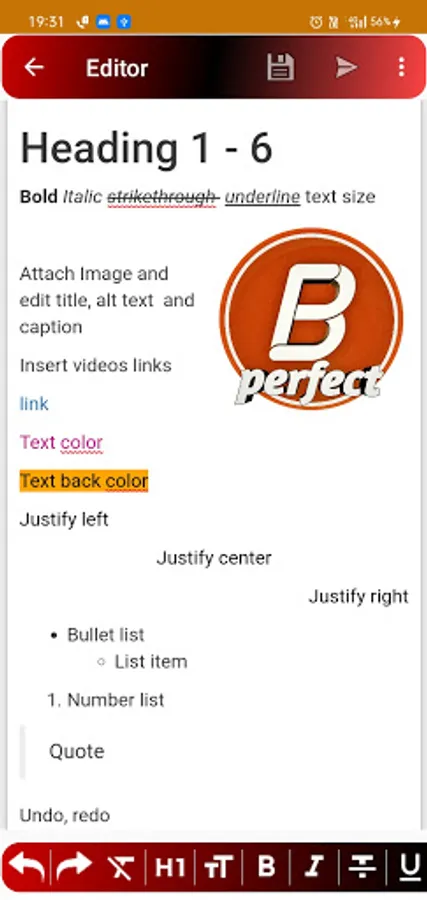 Save post when you make some changes by click on save and continue editing. One click publish, schedule post, export as html file direct from editor.