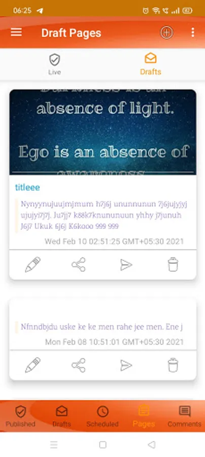 All types of posts are categorized separately which you can open in different tabs respectively like published, draft, schedule and pages are also classified in Live and Saved pages. Both the admin or the author can access the comments. The admin can view and reply to all his comments as well as take action such as approving pending comments, marking comments as spam and removing content of comments. Comments are also shown in different tabs: Live, Pending and Spam comments.