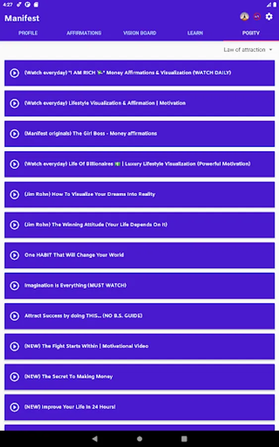 4. PosiTv ā Law of Attraction library of videos and audio. Stay focused with a collection of the great law of attraction videos and guided visualization, attract money affirmations audio, and the law of attraction meditation videos