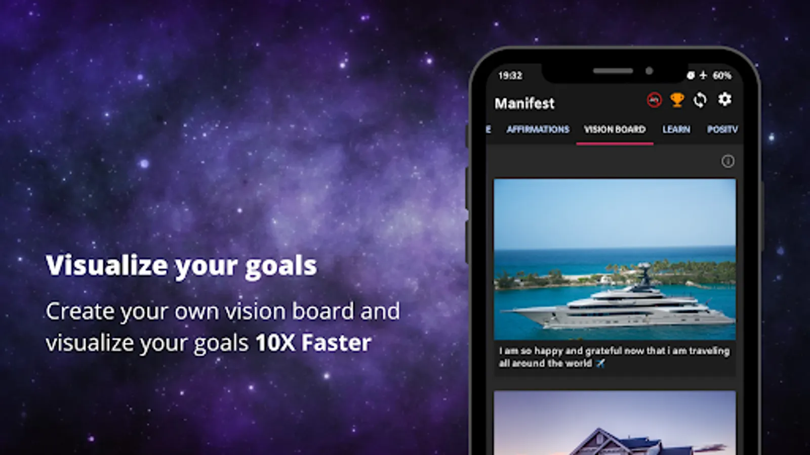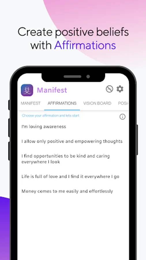 Use the manifestation journal app daily and manifest the 'Law of attraction'. Stay positive with the best manifest goals, manifestation tools such as the vision board and daily affirmations, and the law of attraction meditation.