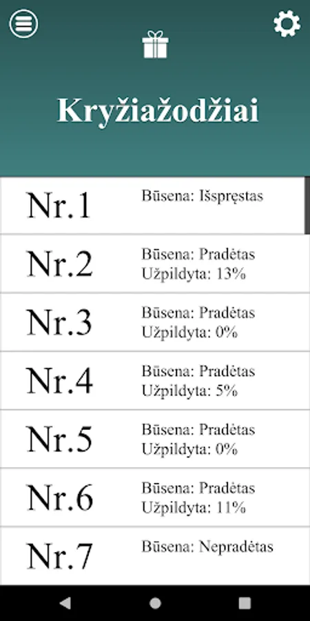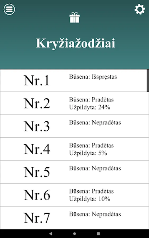 Kryžiažodžiai is a free crossword game in Lithuanian language. Solve crossword puzzles whenever and wherever you want on your android phone or tablet.