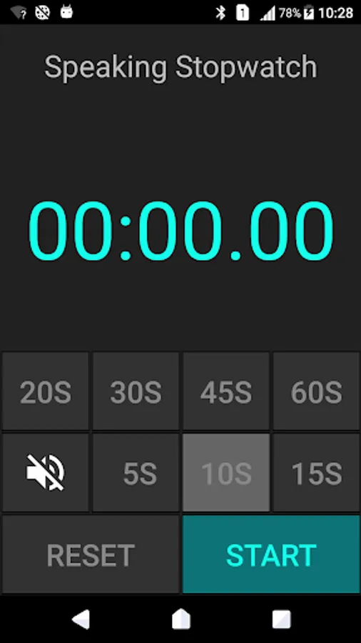 Simply Stopwatch and it will speak every 5 seconds, 10 seconds, etc.
