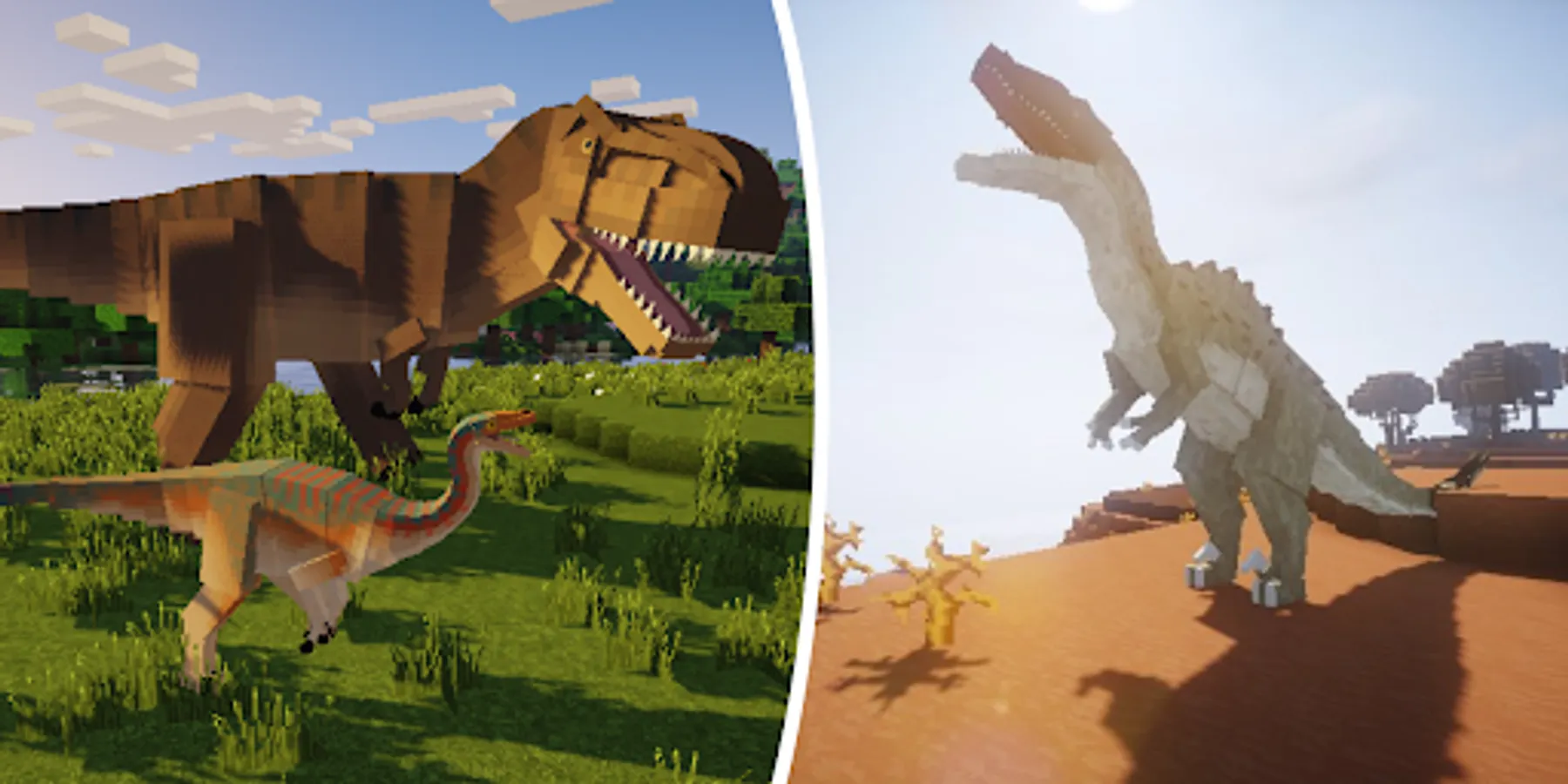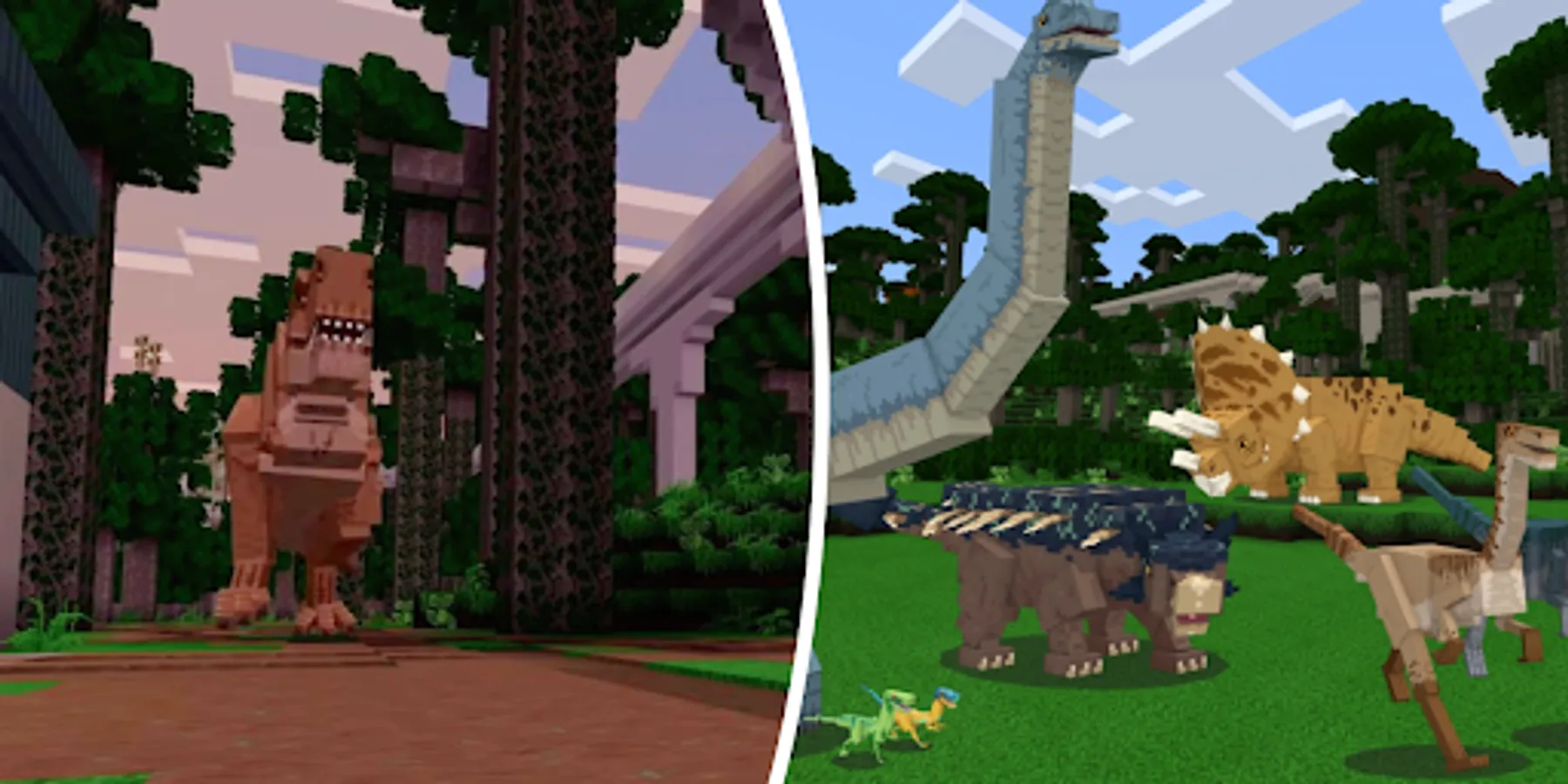 Refresh your gameplay with the new add-on! In real life, you will hardly be able to meet a dinosaur, but now you have the opportunity to meet them in the pixel world! The map itself resembles a huge museum-reserve where prehistoric creatures live. Here you will meet the T Rex, Tyrannosaurus and other animals of the Jurassic period.
