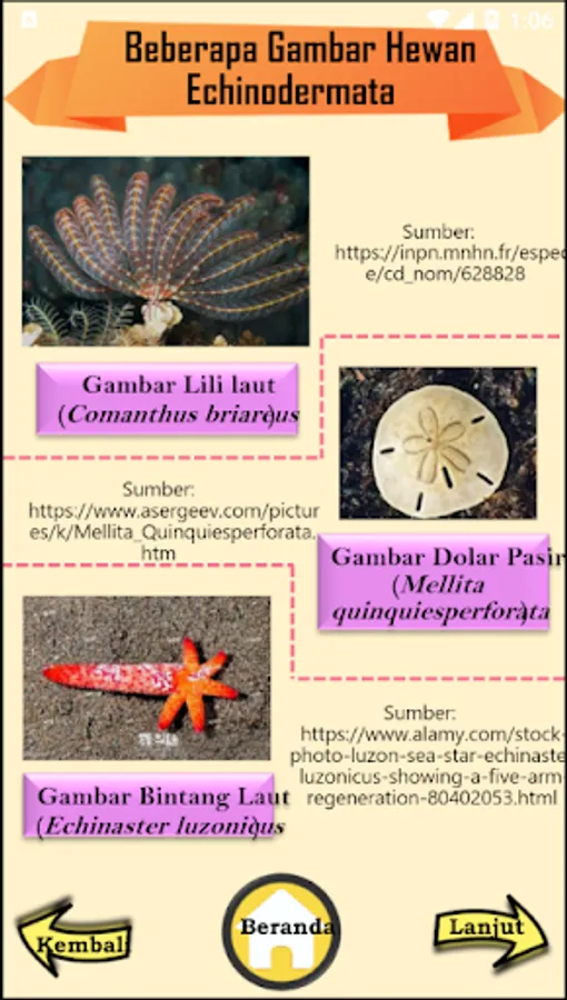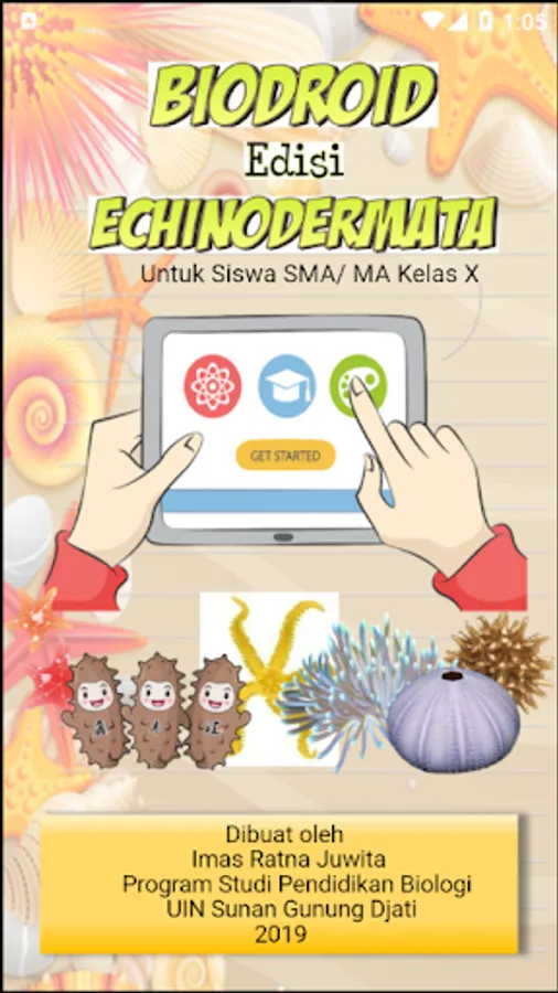 This biodroid contains Echinoderms phylum material for Biology lessons in class X SMA / MA