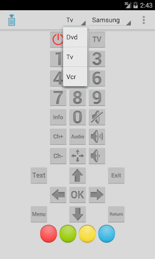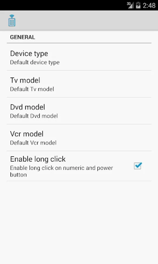 Universal IR Remote Control allows you to use your phone as a remote control for your TV, DVD, VCR or set-top box. It use the infrared (IR) emitter on your phone to control any of your devices.
