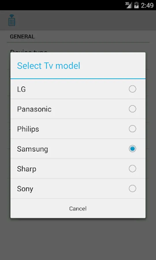 This app has been confirmed to work with Samsung Galaxy S4 to control Panasonic and Sharp TVs.
