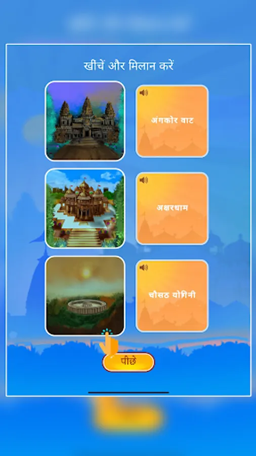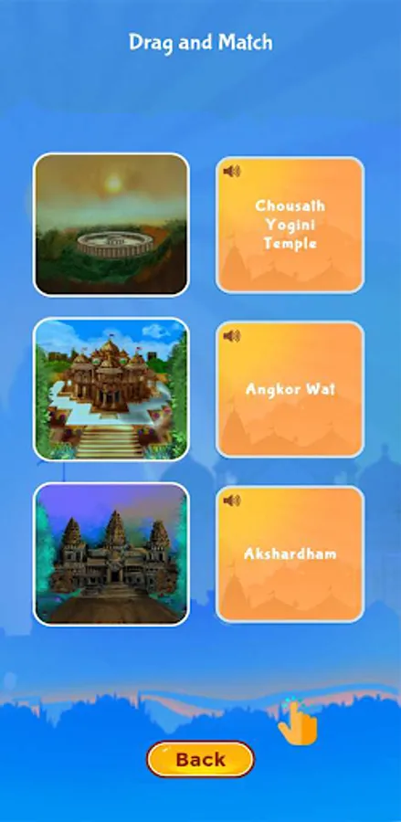 Once the parents are logged to the app, they can scroll through the seven categories. After selecting a particular category, they can learn about different characters and artifacts via the ‘learn’ button. Parents can also introduce their kids to play a fun drag and drop matching game by clicking on the ‘play’ button.