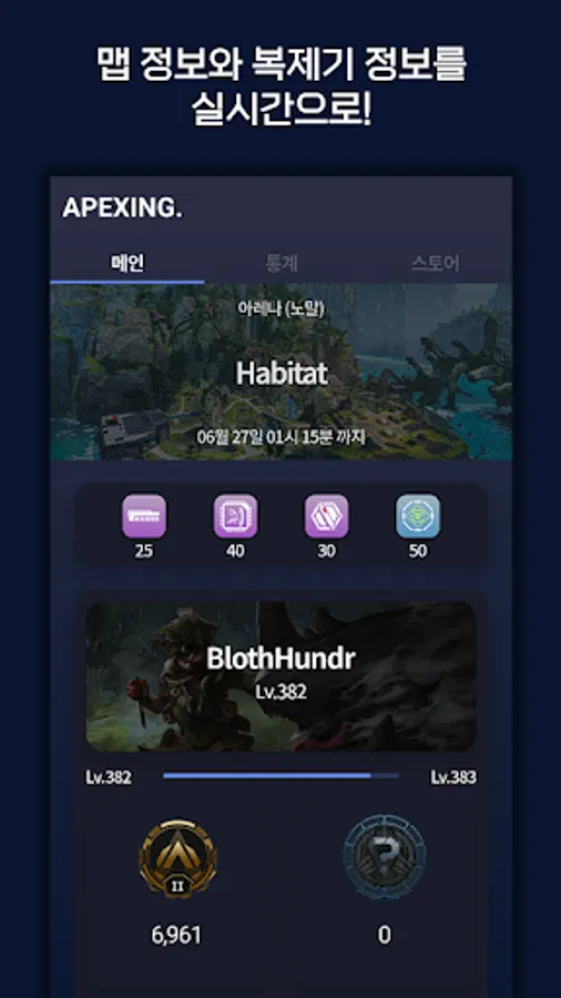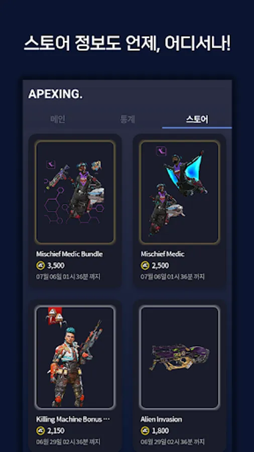 If you register an ID to play Apex Legends, you can check maps, crafting, account information, statistics, Apex news, stats, and store information.