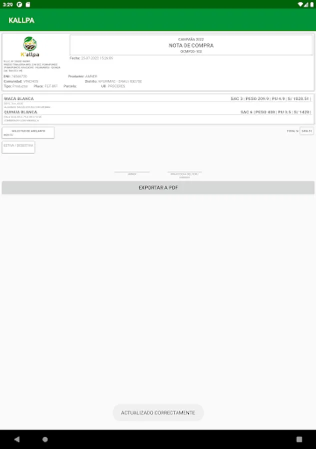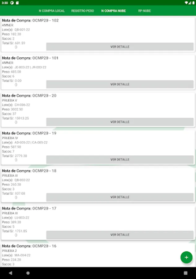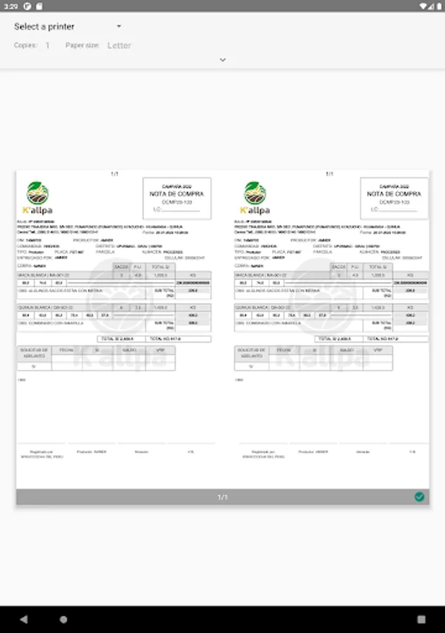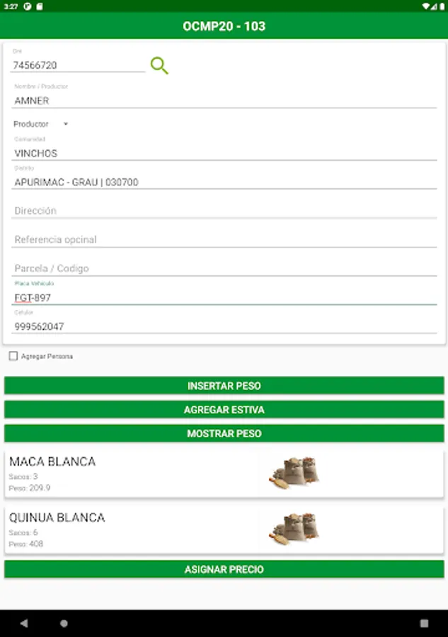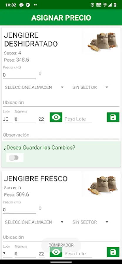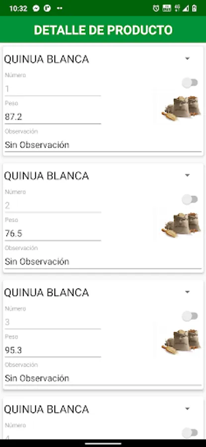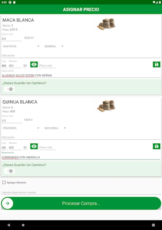 Raw material purchase application, such as quinoa, amaranth, chia, cocoa, etc.