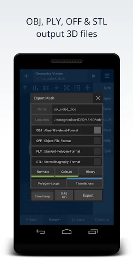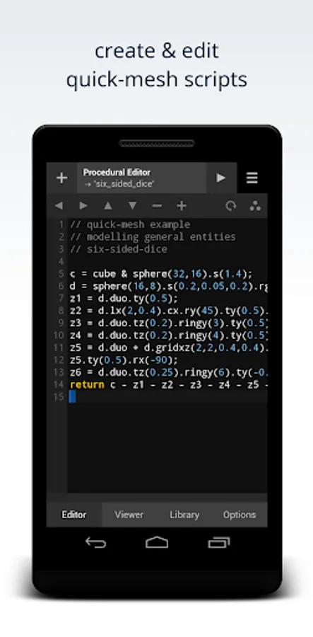 The QMSH Mobile-Editor is a simple app for creating 3D mesh using procedural modelling techniques.
