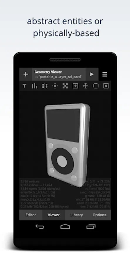 Note: this app is an experimental tool designed to test the limits of procedural modelling on low-power mobile devices. In this sense it is a work in progress. It is reasonably stable - however some features require further performance optimisation.