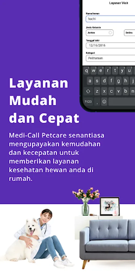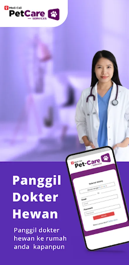Panggil dokter hewan ke rumah anda kapanpun dengan aplikasi Medi-Call Petcare. Kami hadir untuk menyediakan dokter hewan untuk merawat hewan kesayangan (Kucing, Anjing, Kelinci, Hamster dan lainnya) maupun hewan ternak (Sapi, Kambing, Babi) bagi para pencinta hewan. Petcare menyediakan berbagai layanan dokter hewan yang profesional dan berpengalaman di bidangnya dan sudah tersebar di 10 Kota pulau Jawa dan Bali. Saat ini kami memiliki layanan perawatan hewan, dan vaksinisasi untuk hewan kesayangan dan juga hewan ternak anda. Seluruh pelayanan tersebut bisa langsung didapatkan di rumah atau lokasi anda hanya dengan panggil dokter hewan dengan cepat dan mudah.