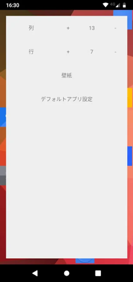 Press and hold the part without the icon → Menu screen (change the number of columns, number of rows, etc.)