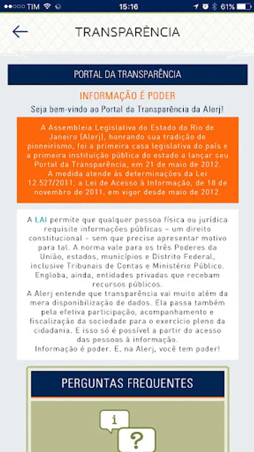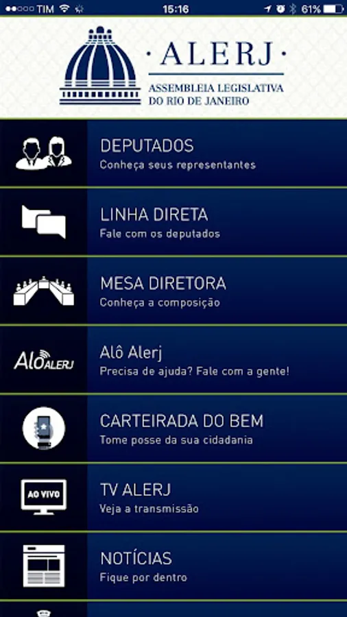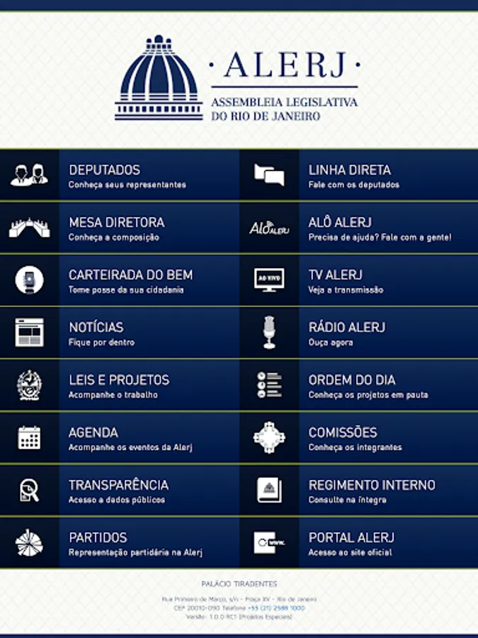 With this application Alerj offers you quick and easy access to services such as Alerj TV live, real-time news, direct line to deputies, laws and bills, and many others.