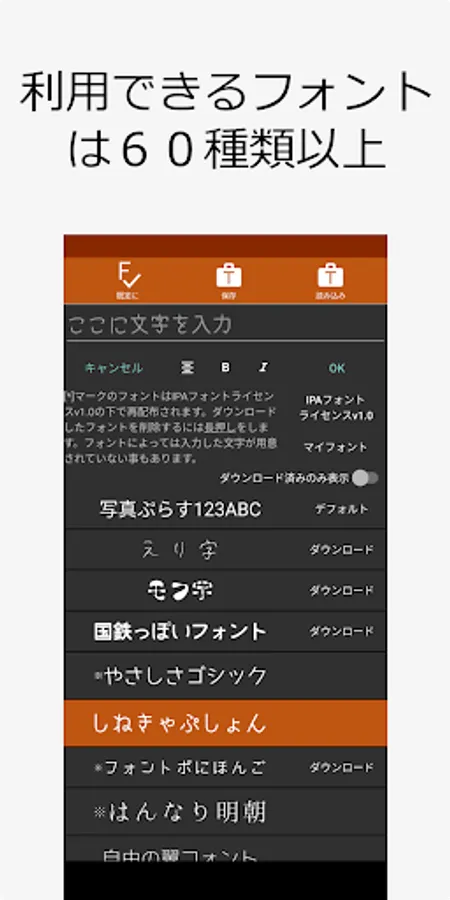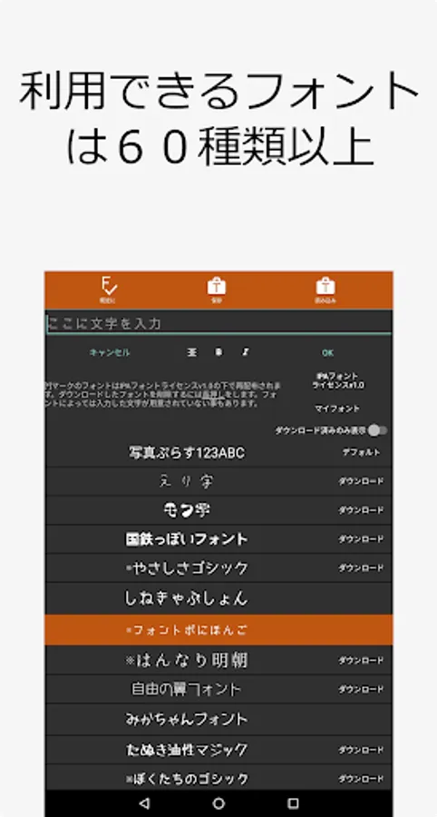 ・More than 60 types of Japanese fonts