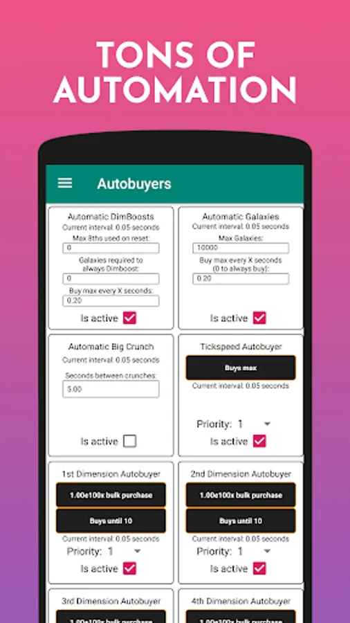 Antimatter Dimensions is an Idle Incremental game with multiple layers of unlocks, prestige, and achievements. The basic goal is to reach Infinity and receive an Infinity point, which can be spent on various upgrades to increase your overall production.