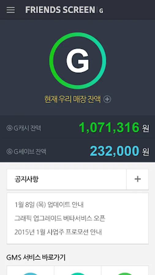 프렌즈 스크린 G 매장 관리시스템