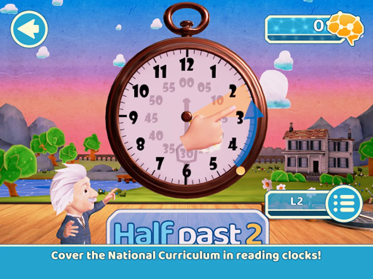 - Master reading the clock: Covering a Key-Stage National Curriculum area, the first stage is broken into 17 different levels where players will learn to tell the time in different configurations: O'Clock, quarter and half, past and to, AM and PM, 24-hour format, and even clocks with Roman numerals!