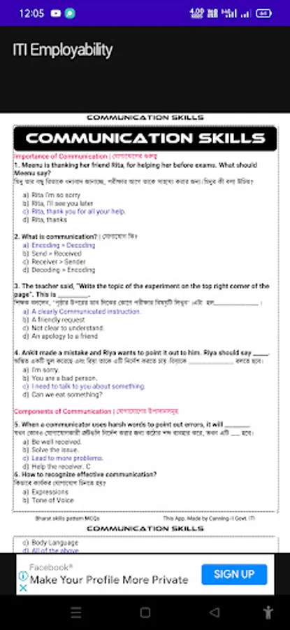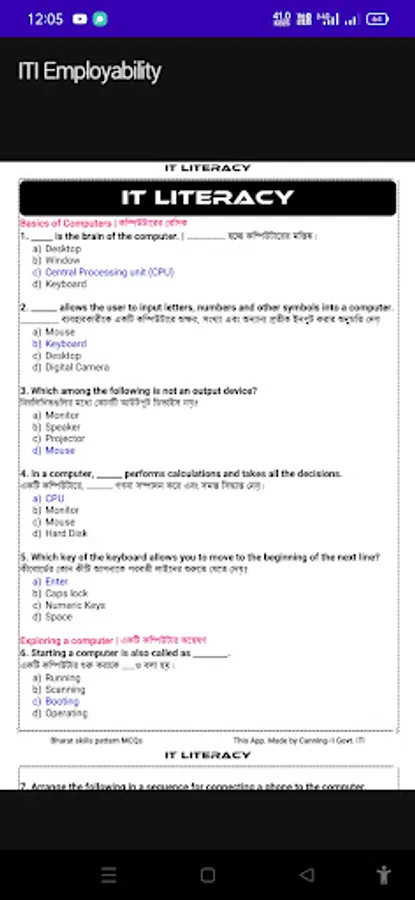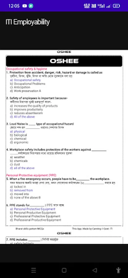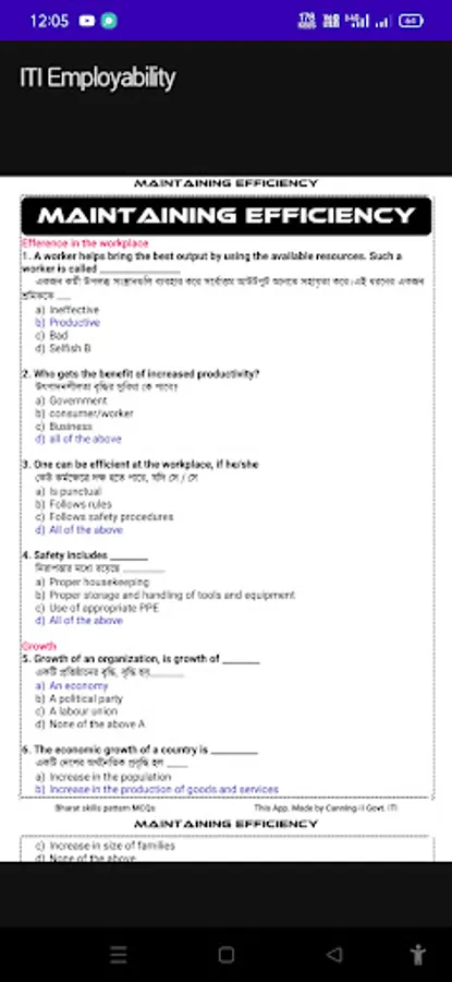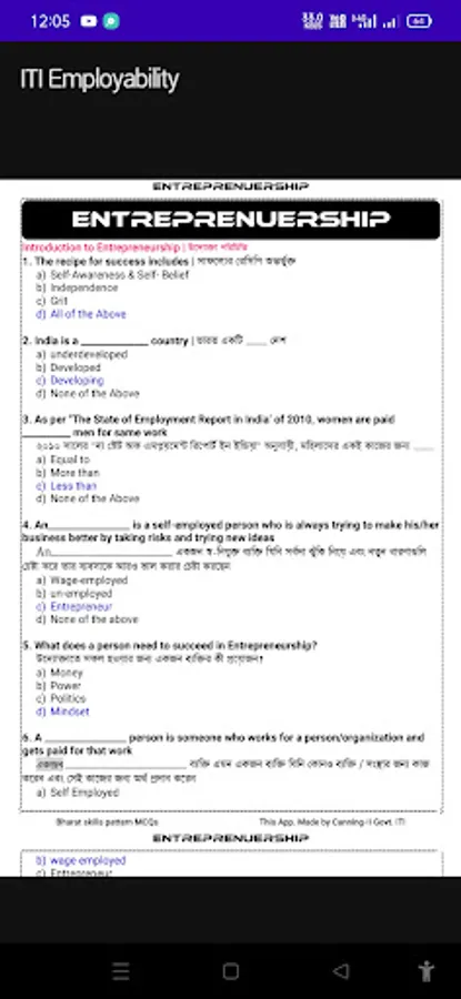 EMPLOYABILITY SKILL MCQ FOR 1ST YEAR APP IS VERY USEFUL FOR ITI ALL TRADE. THE MCQs ARE COLLECTED FROM VARIOUS SOURCES FROM INTERNET. NOW DAYS, ONLINE EXAMS WITH MCQs ARE VERY USEFUL IN PREPARATION FOR COMPETITIVE EXAMS (LIKE-RAILWAY, WBSEDCL, WBSETCL, BHEL, SAIL, ETC. & ELECTRICAL CORE INDUSTRY ALSO).