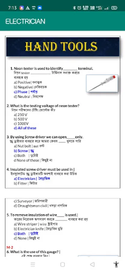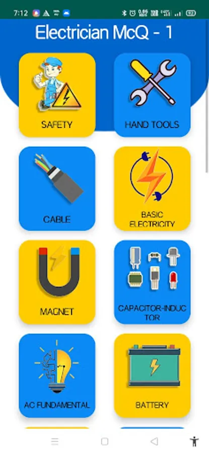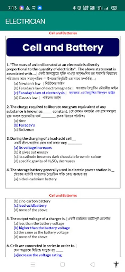 ELECTRICIAN MCQ FOR 1st YEAR APP IS VERY USEFUL FOR ITI ELECTRICIAN TRADE. THE MCQs ARE COLLECTED FROM VARIOUS SOURCES FROM INTERNET. NOW DAYS, ONLINE EXAMS WITH MCQs ARE VERY USEFUL IN PREPARATION FOR COMPETITIVE EXAMS (LIKE-RAILWAY, WBSEDCL, WBSETCL, BHEL, SAIL, ETC. & ELECTRICAL CORE INDUSTRY ALSO).