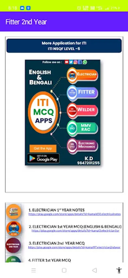 WELCOME TO ALL FITTER TRADE INSTRUCTORS AND FITTER TRADE TRAINEES OF ITI ON THIS ANDROID APP.