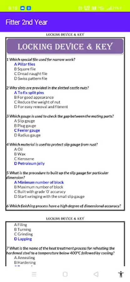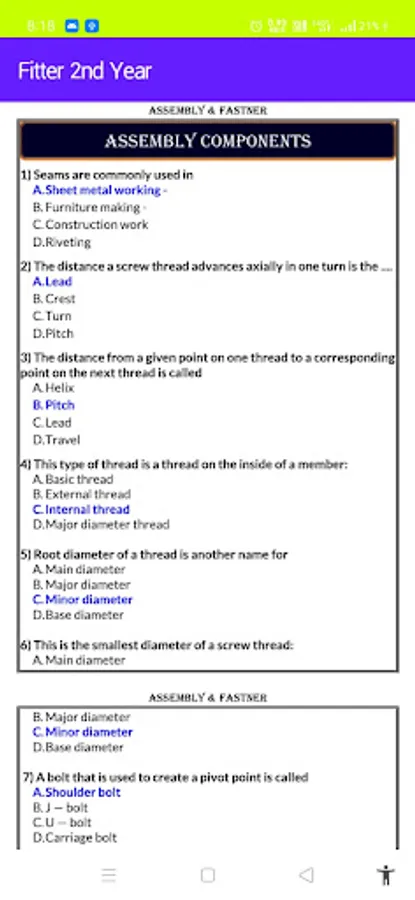 FITTER TRADE MCQ FOR 2nd YEAR APP IS VERY USEFUL FOR ITI FITTER TRADE. THE MCQs ARE COLLECTED FROM VARIOUS SOURCES FROM INTERNET. NOW DAYS, ONLINE EXAMS WITH MCQs ARE VERY USEFUL IN PREPARATION FOR COMPETITIVE EXAMS (LIKE-RAILWAY, DRDO, WBSETCL, BHEL, SAIL, ETC. & MECHANICAL CORE INDUSTRY ALSO).