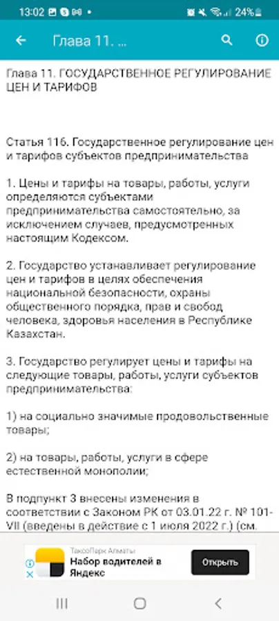 The Entrepreneurial Code of the Republic of Kazakhstan with all updates and additions to laws, the application is updated every 3-6 months, the information is always fresh and up-to-date!