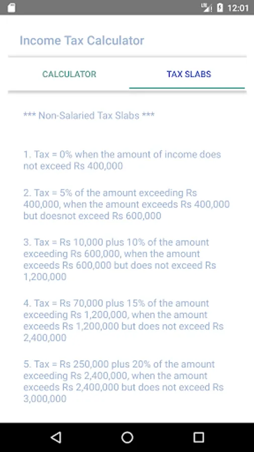 This application is an easy to use income tax calculator for salaried and non-salaried people in Pakistan. With this application get to know if your income is taxable or not and/or how much income tax will be deducted as per FBR (Federal Board of Revenue, Pakistan) Tax Rules for Financial year 2019-20 for your salaried or non-salaried income.