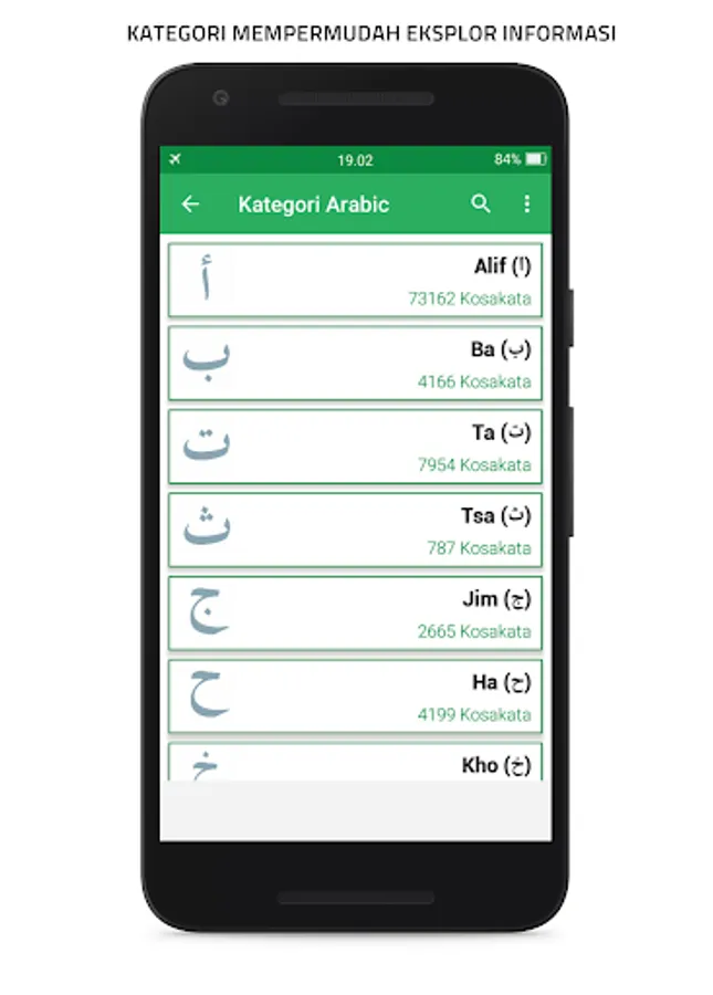 + there are also Arabic vocabulary categories from (ﺍ - ﻱ) making it easier for you to learn and explore information