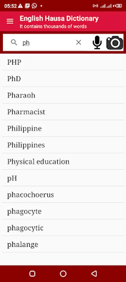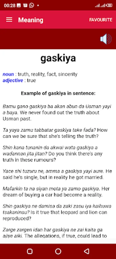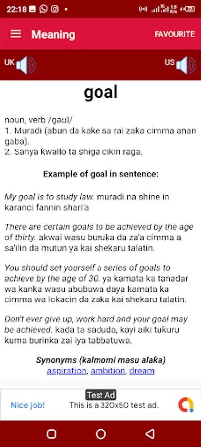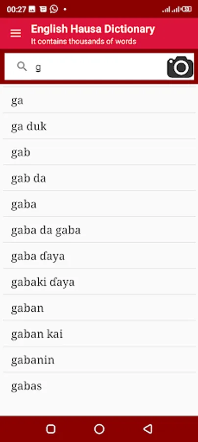The app contains definitions of almost any existing British and American English words, phrases, idioms and Abbreviations, as well as definitions of all Hausa words to English.