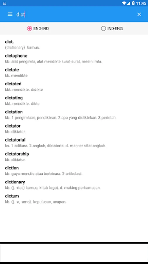 Offline English Indonesian Dictionary application, can be to search for vocabulary without requiring an internet connection, so if you want to search for vocabulary in Indonesian and English offline can be directly used.