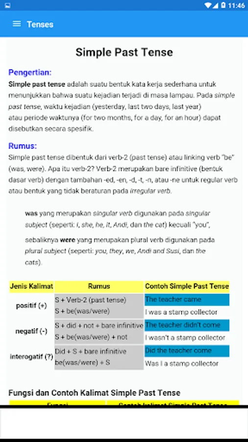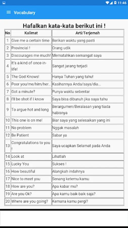Also features a favorite menu, which can store search results and can add words or sentences themselves, so you can create your own dictionary. In addition there are several article tenses that can facilitate pemahan about English, daily vocabulary that is often used. so this application is very, very practical.