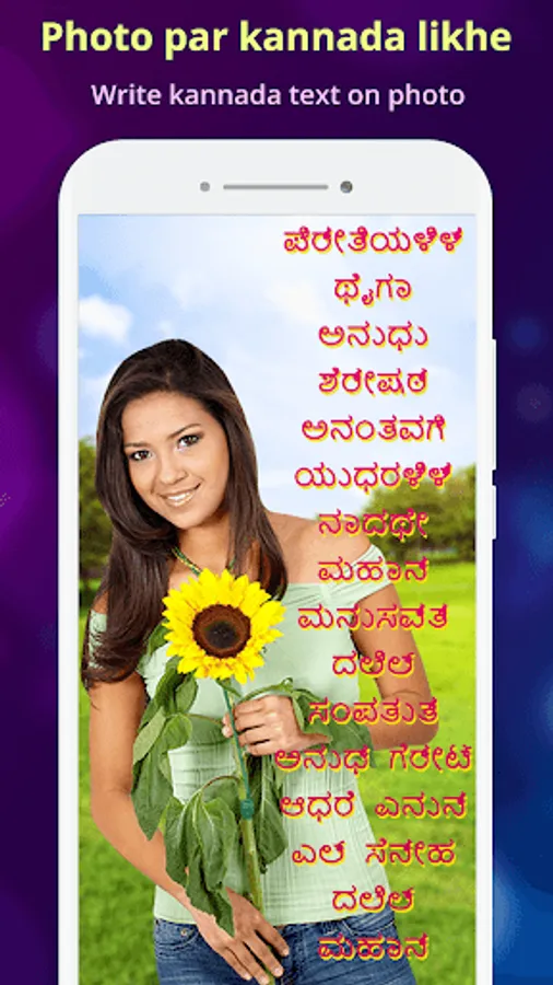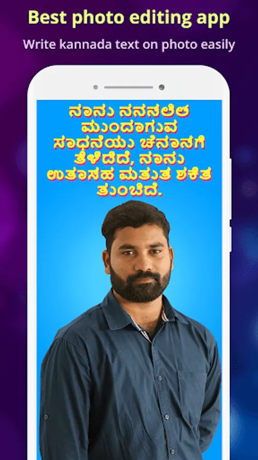 Write Kannada Text On Photo give opportunity to write Kannada love poetry, Kannada poems, Kannada gazals and Kannada shayari on photo by Kannada typing on photo app.also you can select best quotes from different categories of quotes like friends quotes, attitude quotes, inspirational quotes, love quotes etc.in Kannada language and set on your photo.