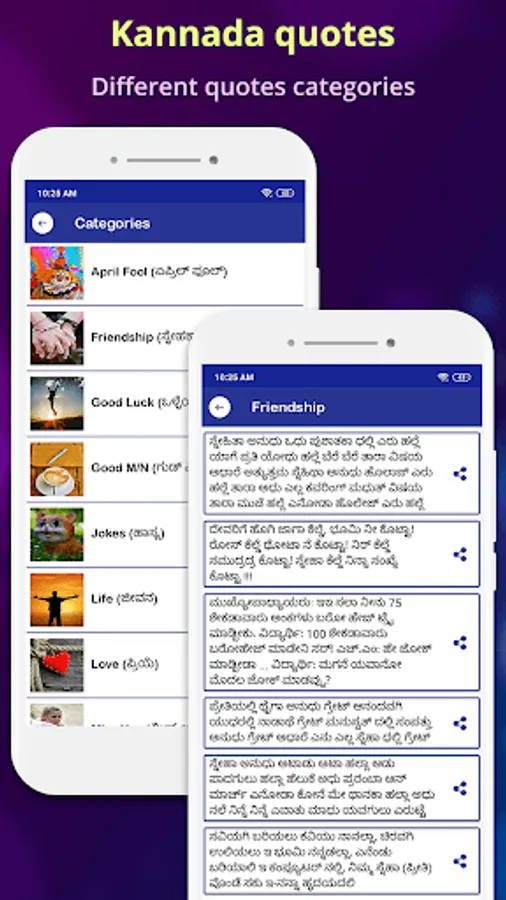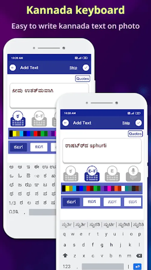 Write your emotions in your favorite Kannada language on your photos or backgrounds and share your photo with Kannada text with your friends and family via social media.