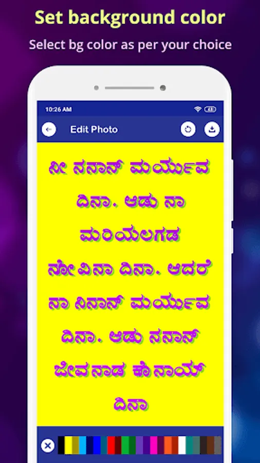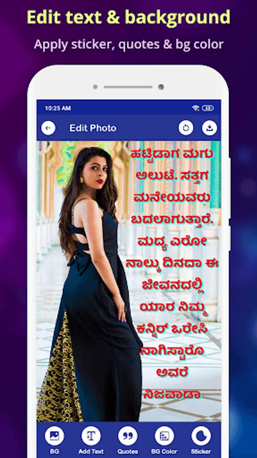 • Select HD Background and also select color for your choice and write Kannada text on photo.