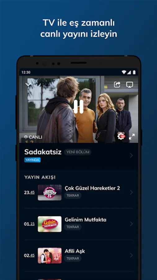 Kanal D uygulamasında, TV ile eş zamanlı canlı yayını takip edebilir, güncel yayın akışı üzerinden, yayında olan dizi ya da programı hızlıca izleme moduna geçebilirsiniz. Kolay kullanımı ile rahat bir deneyim sunan Kanal D uygulamasında, favori dizi ya da programlarınızın bölümlerini dilediğiniz zaman, kaldığınız yerden izlemeye devam edebilirsiniz.