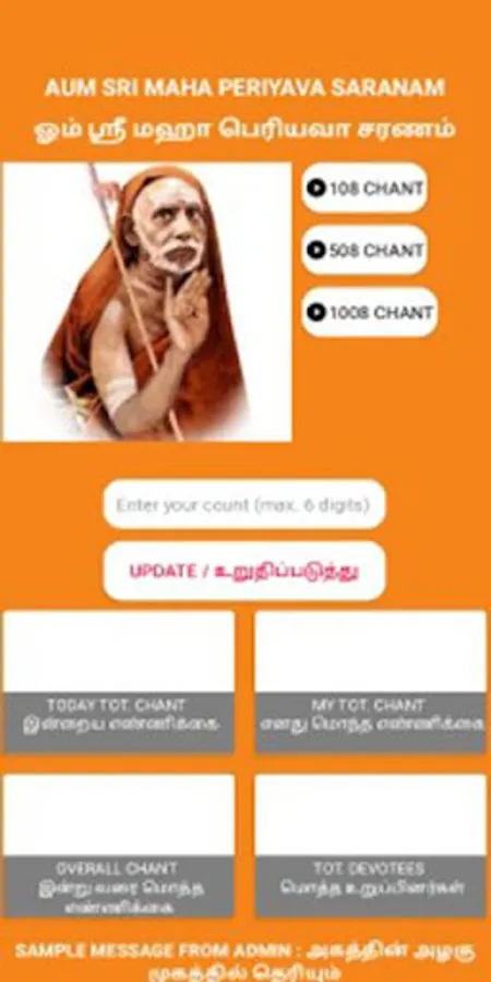 Aum Sri Maha Periyava Saranam App provides devotees a provision to update their Slogam count everyday and allows them to listen to Slogam