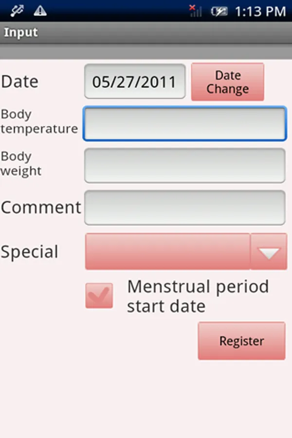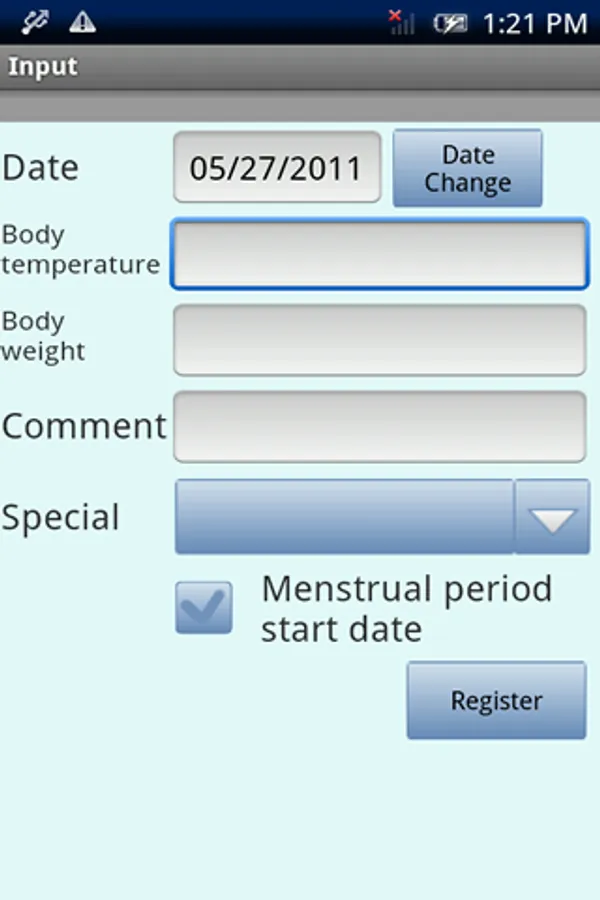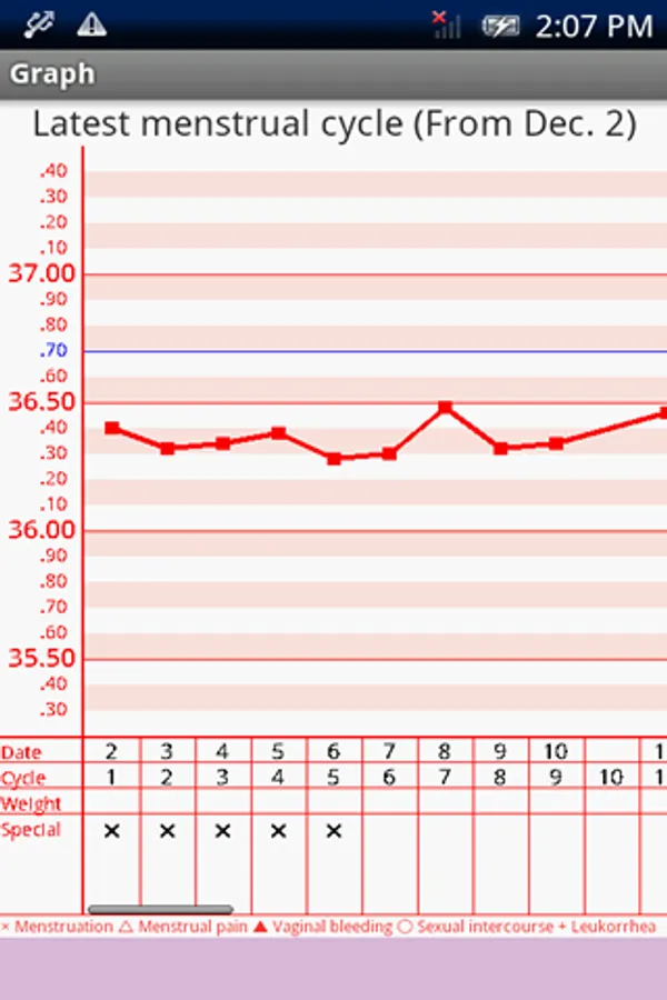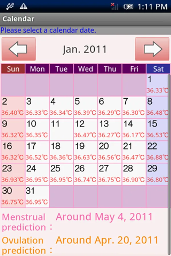 Displays the basal body temperature calendar.It also predicts the day of ovulation and menses.