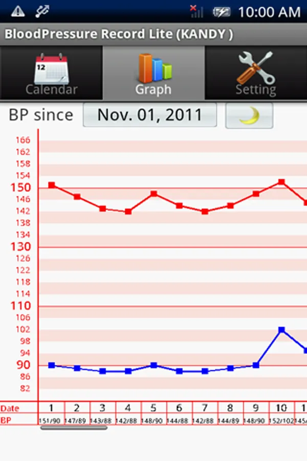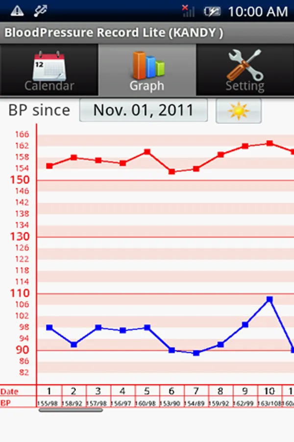 Please select a date from the calendar.Blood pressure, pulse can be recorded.