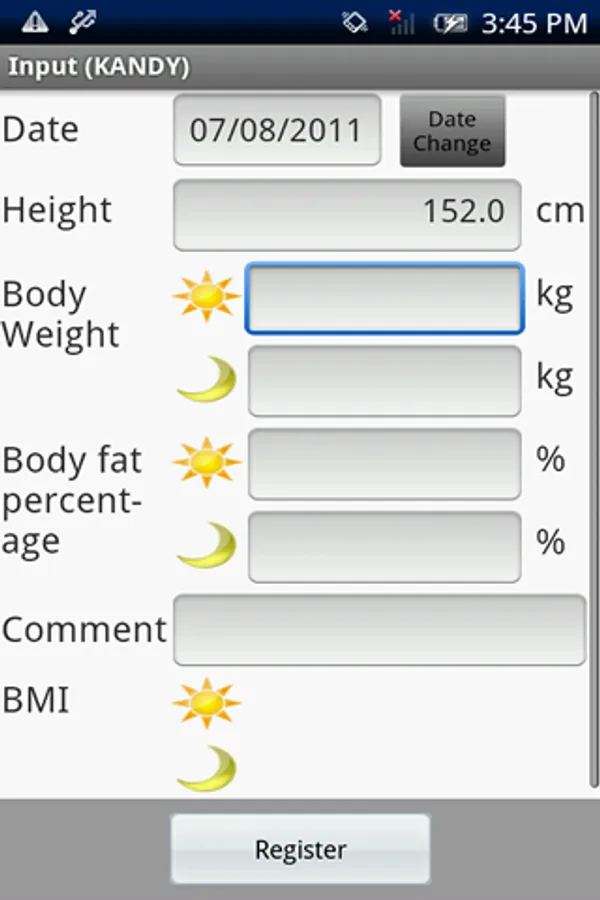 Please select a date from the calendar.Body weight, body fat percentage can be recorded.